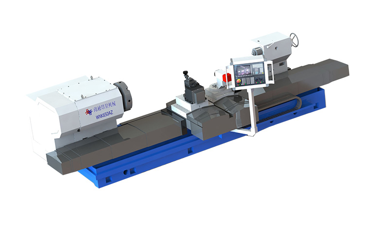 WXK-650AZ高精密重型數控螺紋銑床是本公司在WXK-500KZ的基礎上充分研究和開發,綜合分析了國內和國外的同類產品優越性和存在缺點綜合設計開發的一代新產品,該產品適合于加工外徑在100-650之間,長度在2500之內的軋輥。加工月牙槽直徑在φ6~φ60之內的各種槽型,符合GB1499-2018標準。該產品可按客戶的任意角度要求自動切削不同的旋向,跳槽,等分等??筛鶕蛻舻囊笾谱鞲鞣N精軋螺紋。雕銑頭根據客戶要求制作各種高標和防偽標記等。產品自動化程度高,功能齊全,一機多用,滿足客戶的加工要求。適合加工超高硬度大規格的碳化鎢輥環和高速鋼軋輥、復合輥等。